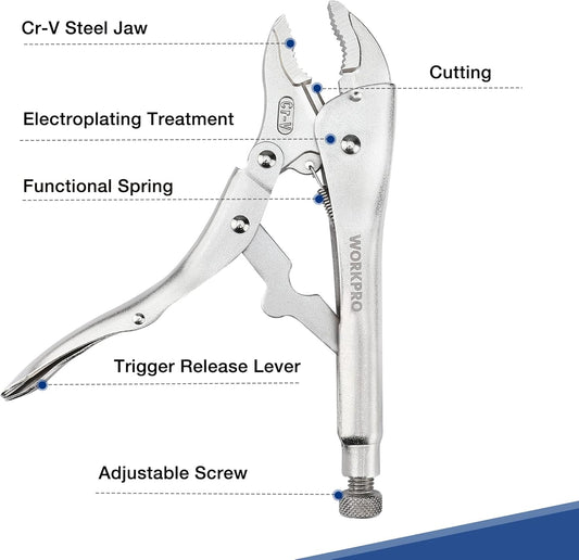 WORKPRO 5-Piece Locking Pliers Set, Pliers Tool Set, Vice Grips with Chrome-vanadium Steel, 5/7/10 inch Curved Jaw Pliers, 6.5/9 inch Long Nose Pliers